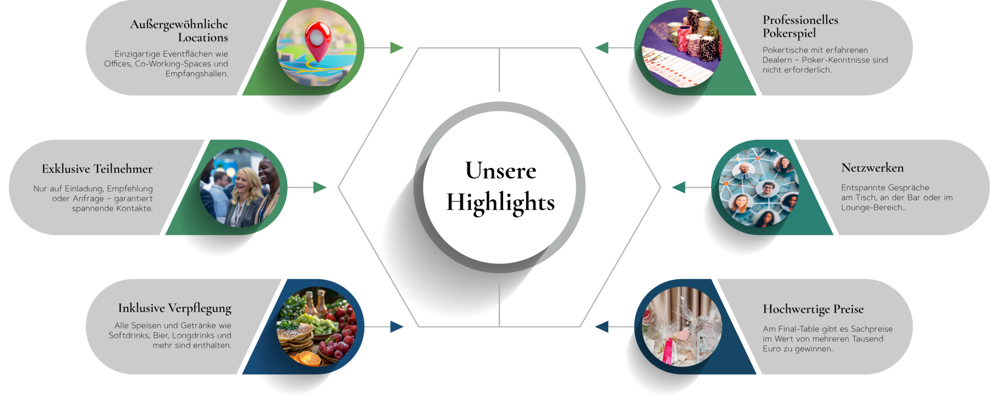 Unternehmens Poker bringt spannende Unternehmer in stilvollen Locations zusammen, um zu spielen und wertvolle Kontakte zu knüpfen.